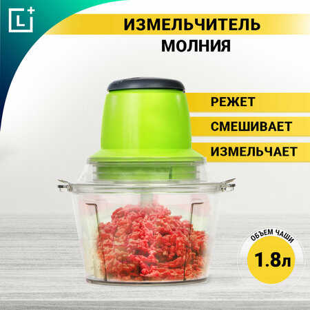Электрический измельчитель Молния от Leomax - мощный и многофункциональный кухонный комбайн, который может заменить несколько устройств в вашей кухне. Он сочетает в себе дополнительные функции блендера и овощерезки, что позволяет использовать его для множества задач: от нарезки овощей и измельчения продуктов до приготовления коктейлей и смузи. Этот измельчитель электрический выполнен в компактном и портативном дизайне, что делает его идеальным для использования как дома, так и в поездке. Благодаря своей мощности, мини комбайн Молния может легко справиться с самыми твердыми продуктами, включая орехи и лед. Безопасный и простой в использовании, он станет незаменимым помощником в вашей кухне. Просто засыпьте продукты в чашу, нажмите на кнопку, и все остальное измельчитель сделает сам. Для крупной нарезки достаточно всего нескольких быстрых нажатий. Идеальный подарок на новый год! рекомендации непрерывного нажатия - не более 30 секунд. Если же Вы хотите измельчить ингредиенты, подержите кнопку несколько секунд. Чтобы на долгое время сохранить работоспособность мотора, необходимо включить измельчитель на 30 секунд, затем дать мотору отдохнуть полминуты и снова приступить к измельчению. Если Вы ищете электрический измельчитель, который обеспечивает высокую производительность и многофункциональность, то измельчитель Молния - это именно то, что вам нужно. Комплектация: измельчитель - 1 шт; одинарный нож - 1 шт; двойной нож - 1 шт. Данными ножами можно нарезать одинаковые продукты, разница только в степени нарезки. Одинарный нож нарезает более крупными кусочками. Преимущества: 1. Работает за Вас, измельчает лед и любые другие продукты. Такой мощный, что может размолоть продукты до состояния пюре, эффективная и быстрая работа. 2. Два ножа из качественной нержавеющей стали, мощный мотор, вместительная чаша объемом 1,8 литра. 3. Легко мыть (НЕ рекомендуется мыть в посудомоечной машине). 4. Безопасная система включения, герметичное закрытие прибора - готовьте чисто. Работает от сети. Характеристики: мощность: 300 Вт; скорость работы: 3600 об/мин; объём чаши: 1,8 л (рекомендуется заполнять чашу на 3/4 и меньше). Длина шнура электропитания: 0,9 м. Материал лезвий - нержавеющая сталь марки 420 (надеваются на штырек в центре чаши). Высота - 23 см. Режущая часть насадки с 4 ножами - 7 см. Режущая часть насадки с 2-мя ножами - 6 см. Режущая часть находится с внешней стороны. Уровень шума на расстоянии 2-х метров - до 110 Дб.