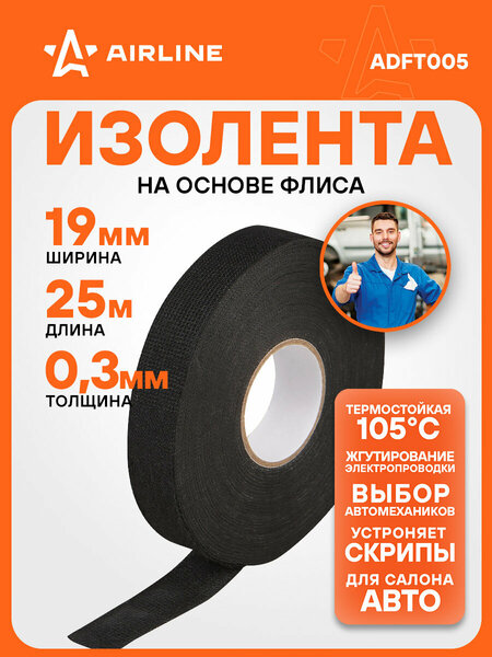 Изолента для жгутирования проводки 19 мм*25 м, антискрип, на осн. флиса ADFT005 AIRLINE