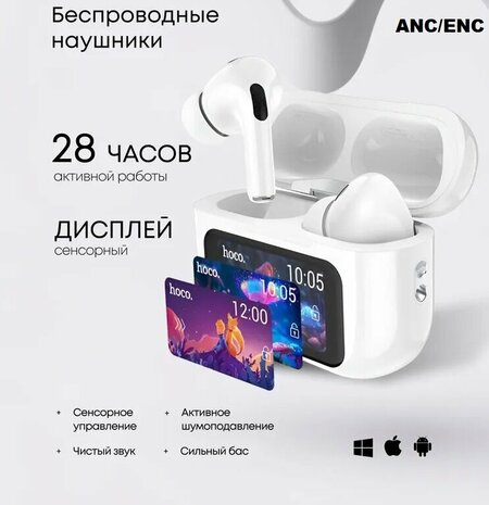 Самые бюджетные и качественные наушники бренда Hoco, позволят насладится потрясающим звуком. По качеству ничем, не уступают более известным брендам! Наушники беспроводные с микрофоном: комфорт и качество звука Наушники имеют конструкцию вкладышей, что обеспечивает комфортное использование и надежную фиксацию в ушах. Автоматическая подстройка громкости позволяет наслаждаться качественным звуком без лишних шумов и искажений. Тип акустического оформления наушников можно выбрать из самого кейса на экране: 3 режима – 1. нормальный режим 2 . режим шумоподавления 3. прозрачный режим. Что гарантирует чистое и насыщенное звучание. Вы сможете наслаждаться любимой музыкой без помех и искажений. Так же на кейсе можно пользоваться такими функциями как: 1. Проигрыватель - Остановка или смена музыки 2. Управление громкостью 3. Найти наушник (левое или правое) 4. Выбор режима акустики (норм, шумоподавление, прозрачный) 5. Эквалайзер 6. Таймер отключения 7. Фотокнопака 8. Фонарик 9. Яркость экрана кейса 10. Выбор языка на кейсе 11. Настройка даты и времени 12. Выбор анимации на экране кейса Так же на кейсе есть отверстие для закрепления ремешка (по желанию) Быстрое подключение. Легкость и удобство использования Самый отличный подарок любому человеку нашего поколения на новый год, или на любой праздник. Вес наушников составляет всего 50 грамм, что делает их легкими и удобными для длительного использования. Наушники выполнены в стильном белом цвете, который подойдет для любого образа и станет ярким акцентом вашего образа. Выбирая наушники беспроводные с микрофоном, вы получаете комфорт, высокое качество звука и стильный аксессуар для вашего образа.