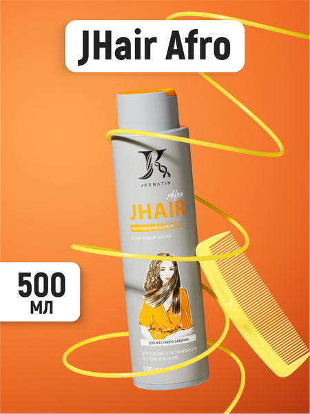 JHair Аfro кератиновое выпрямление волос с жестким завитком и афрокудрями.