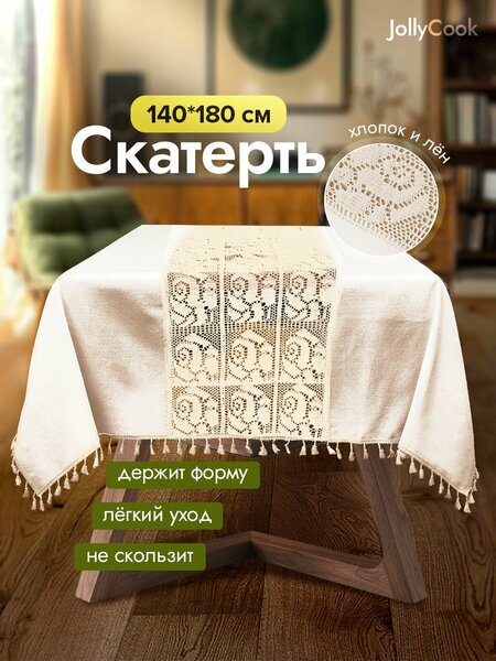 Бежевая скатерть с кружевами преобразит ваш дом и сделает его по-настоящему уютным. Она выполнена из льна с добавлением высококачественного хлопкового полотна, который прекрасно сохраняет форму, а прочная текстура ткани предотвращает скольжение скатерти по столу. Тонкие ажурные вставки придают скатерти особую утонченность и роскошь. Благодаря своей износостойкости и легкости в уходе данная модель станет незаменимой на вашем обеденном столе, подчеркивая его изысканность и создавая атмосферу праздничности. Она великолепно смотрится как повседневно, так и в торжественные моменты, например, на праздничных застольях, семейных ужинах или романтических вечерах. Тканевая скатерть уместна в любом интерьерном стиле: скандинавском бохо, классическом или провансе. При соблюдении правил эксплуатации и ухода она сохранит свой безупречный вид и будет украшать вашу квартиру многие годы. Не упустите возможность приобрести этот роскошный аксессуар для своего дома. Порадуйте себя и близких, создав атмосферу комфорта и гармонии!