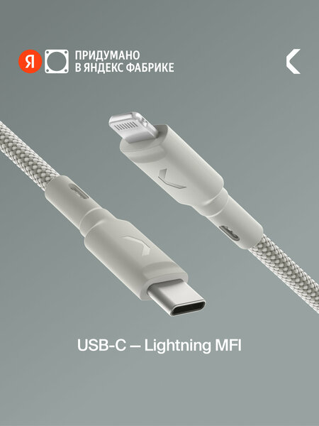 Commo Range Cable — кабель с разъёмами USB-C — Lightning MFI, придуманный в Яндексе. Специально для него мы разработали усиленное нейлоновое плетение. Commo Range выдержит 10 000 сгибаний и дольше продержится в схватке с четверолапыми. Официально сертифицирован по стандарту MFI. Упаковка из 100% перерабатываемых материалов. Собрать полный комплект Commo из зарядного блока и провода можно на commo. ru