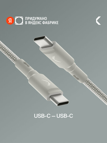 Commo — это бренд аксессуаров для мобильной электроники, придуманный в Яндексе. Commo Range Cable — это USB-C — USB-C кабель, длиной 1,2 метра. Подходит для зарядки смартфонов, наушников и других устройств. Усиленное нейлоновое плетение и прочный коннектор из прорезиненного пластика защищают от перегибов, разрывов и повреждений. Удобный ремешок помогает аккуратно и компактно хранить провод — и брать его с собой в поездки и путешествия. Полный Commo-комплект из кабеля и зарядного блока можно собрать на commo.ru.