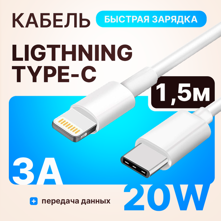 Кабель для айфона Type-C Lightning для Iphone 1,5 метра, со скоростью до 480 Мбит/c