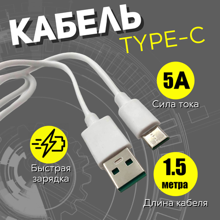 Кабель для быстрой зарядки USB Type C – USB Type A, 1.5 метра, 5 ампер, шнур для смартфона, телефона, планшета, фотоаппарата