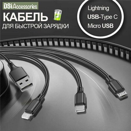 Кабель для зарядки USB A / USB - Type C / Micro USB / шнур для телефона