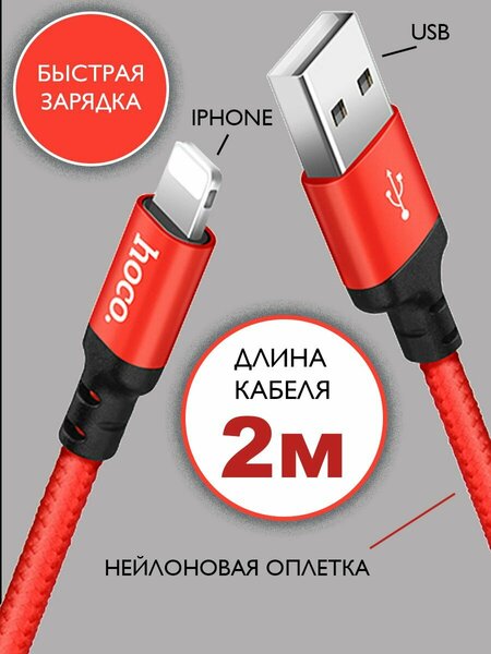Hoco - X14 Lightning 200см - это отличный вариант для зарядка вашего гаджета Apple. Кабель для айфон 2 метра позволяет расширить пространство зарядки телефона и пользоваться устройством где вам удобно. Нейлоновая оплетка провода для айфон, бережно сохранит ваш кабель от перегиба и износа. Так же, быстро и качественно зарядит ваш гаджет. Кабель подходит устройствам, поддерживающим Lightning, высокая пропускная способность 2 A и передача данных. Данное зарядное устройство даст вам возможность очень быстро зарядить ваш смартфон