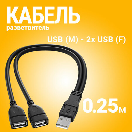 Кабель переходник GSMIN C81b разветвитель на два разъёма USB (M) - 2x USB (F) 0.25 м (Черный)