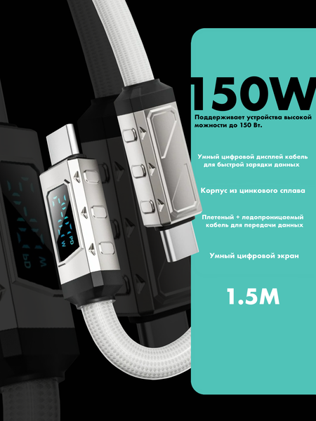 Представляем вашему вниманию кабель с дисплеем для быстрой зарядки и передачи данных Type-C - Type-C, который станет незаменимым аксессуаром для вашего мобильного устройства. Этот кабель подходит как для современных смартфонов на Android, так и для iPhone, обеспечивая надежную и эффективную зарядку. Изготовленный из высококачественных материалов, кабель обладает прочностью и долговечностью, что гарантирует его долговременное использование. Удобный дизайн и белый цвет придают ему стильный вид, который хорошо вписывается в любой интерьер или одежду. Благодаря поддержке быстрой зарядки, вы сможете значительно сократить время на подзарядку устройства. А функция передачи данных позволяет легко и быстро обмениваться файлами между устройствами без потери скорости и качества. Этот кабель идеально подходит для синхронизации файлов, загрузки музыки или передачи фотографий. Кабель с дисплеем предоставит вам всю необходимую информацию о процессе зарядки, что делает его использованием интуитивно понятным. Вы всегда будете знать уровень заряда вашего устройства, что добавляет дополнительный комфорт к его использованию. Выбирайте надежный и удобный кабель для быстрой зарядки и передачи данных, который отвечает всем современным требованиям и предлагает отличное сочетание качества и цены. Сделайте свою жизнь удобнее с этим практичным кабелем Type-C - Type-C, который не подведет ни в одно время.