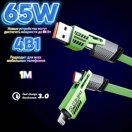 Кабель трансформер 4 в 1: быстрая зарядка и передача данных Кабель трансформер 4 в 1 предназначен для быстрой зарядки и передачи данных. Он оснащен различными разъемами и переходниками, что позволяет использовать его с различными устройствами. Кабель трансформер 4 в 1 имеет зеленый цвет, что делает его стильным и заметным на вашем рабочем столе или в сумке. Благодаря своим функциональным особенностям, кабель трансформер 4 в 1 станет незаменимым аксессуаром для вашего устройства. Он обеспечит быструю зарядку и передачу данных, а также будет выглядеть стильно и аккуратно.