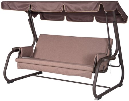 Достоинства:Качели хорошие, основа прочная. Цвет красивый. Недостатки:Некоторый крепёж короткий, некоторый длинноватый.Собрали не очень быстро. Комментарий:Стоят первый день. Время покажет. Заказывали тёмного цвета шоколад. Привезли тент как заказывали тёмный, а матрас светлее. Но получилось даже красивее. Хорошо хоть не цветастый.