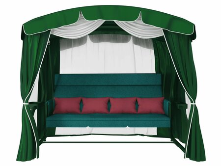 Качели садовые 4х-местные c антимоскитной сеткой. Размеры качелей в собранном виде: длина 246 см, ширина 150см, высота 190 см. Длина дивана 200 см. 4 посадочных места. Максимальная нагрузка на качели садовые взрослые 400 кг. Качели садовые изготовлены из металла - холоднокатаной стальной трубы Ø63 мм, толщиной 1,5 мм с полимерным покрытием из порошковой полиэфирной краски, запеченной при высокой температуре. Такое покрытие качель предохраняет от атмосферных осадков, позволяет оставлять качели зимовать на улице, предварительно сняв мягкие элементы и каркас тента. Форма ножек дугообразная с четырьмя металлическими подпятниками. Подпятники предохраняют ножки от взаимодействия с землей или бетоном. Каркас сиденья - сварная сетка. Угол наклона спинки сиденья регулируется, возможно установить до семи вариантов угла наклона за счет цепочки. Диван раскладывается до положения кровати. Мягкий диван изготовлен в виде цельных сиденья, спинки и подголовника. Подголовник, передняя сторона спинки и сидения дивана сшиты из ткани типа "рогожка", состав - полиэфир 100%, плотностью 340г/м. Задняя сторона сшита из спанбонда. Ткань с водоотталкивающей пропиткой. Наполнителем мягкого дивана является холкон, плотностью 1200. Крыша садовые качели для дачи дугообразная, с узлом регулировки наклона каркаса тента. Тент качели для дачи и сада сшит из ткани ткань Оксфорд плотностью 210 г/м. Есть антимоскитная сетка (АМС) белого цвета со ставками по углам из ткани Оксфорд, плотностью 210 г/м , предохраняющая от комаров, мошкары. АМС можно полностью закрыть или открыть с помощь замков "молния", расположенных по двум углам передней стороны качелей. АМС можно полностью поднять и закрепить под тентом. В комплекте качели для дачи также входят два больших пластиковых подстаканника, 4 подушки 50х30 см и два мягких подлокотника, сшитых из ткани типа "рогожка", состав - полиэфир 100%, плотностью 340г/м, с наполнителем полиэфирное волокно. Каркас качелей упакован в гофрокороб из пятислойного картона, который обеспечивает сохранность при транспортировке, размер коробки 232х70х23 см. Мягкий элемент упакован в рукав из ПВД, размер упаковки 210х55х20 см. Общий вес упаковок 74 кг. Цвет мягких элементов может отличаться . качели садовые , садовые качели , качели садовые взрослые , садовые качели взрослые