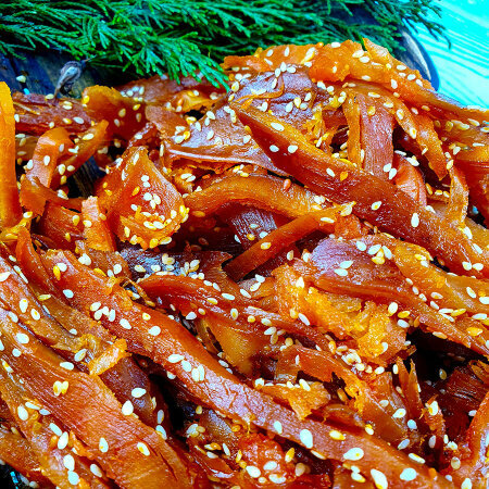 Кальмар "Рваный по-Шанхайски Премиум" - это изысканный морской деликатес, который придется по вкусу любителям азиатской кухни. Продукт изготовлен из Тихоокеанского кальмара, который славится своим нежным и сочным мясом. Особенностью данного продукта является его оригинальная технология приготовления. Кальмар нарезается на тонкие полоски, которые затем сушатся и вялятся. Это придает продукту особый вкус и аромат, который не оставит равнодушным ни одного гурмана. Остро-сладкий вкус с добавлением кунжута делает этот продукт уникальным и запоминающимся. Он отлично подойдет для перекуса или в качестве закуски к пиву или вину. Продукт упакован в удобную упаковку, которая сохраняет все вкусовые качества и свежесть продукта. Кальмар "Рваный по-Шанхайски Премиум" - это не просто закуска, это настоящее гастрономическое удовольствие, которое придется по вкусу каждому ценителю азиатской кухни.