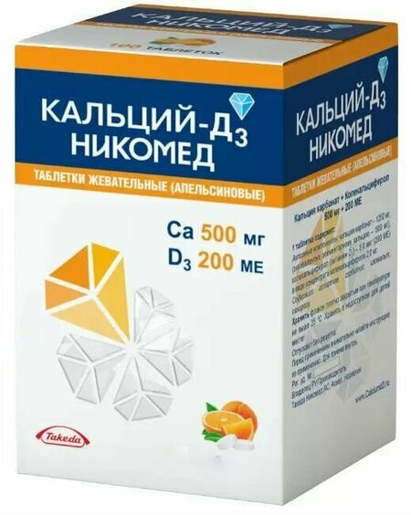 Кальций-Д3 Никомед принимают внутрь. Таблетки можно разжевывать или рассасывать и принимать во время еды. Профилактика и лечение дефицита кальция и/или витамина D3 Взрослым и детям старше 12 лет - по 1 таблетке 2 раза в день, или 2 таблетки один раз в день. Детям с 5 лет до 12 лет - по 1-2 таблетки в день. Детям с 3-х до 5 лет - дозировка в соответствии с рекомендациями врача. Дополнение к специфической терапии и профилактике остеопороза и его осложнений (переломы костей) Взрослым - по 1 таблетке 2-3 раза в день. Особые группы пациентов Пациенты с нарушением функции печени: Коррекции дозы не требуется. Пациенты с нарушением функции почек: Не следует применять препарат Кальций-Д3 Никомед при тяжелой почечной недостаточности. Пожилые пациенты: Доза такая же, как и для взрослых. Следует учитывать возможное снижение клиренса креатинина. Продолжительность лечения При применении для профилактики и лечения дефицита кальция и/или витамина D3 средняя продолжительность курса лечения не менее 4-6 недель. Количество повторных курсов в течение года определяют индивидуально. При применении для дополнения к специфической терапии и профилактике остеопороза и его осложнений (переломы костей) длительность лечения определяется врачом индивидуально.