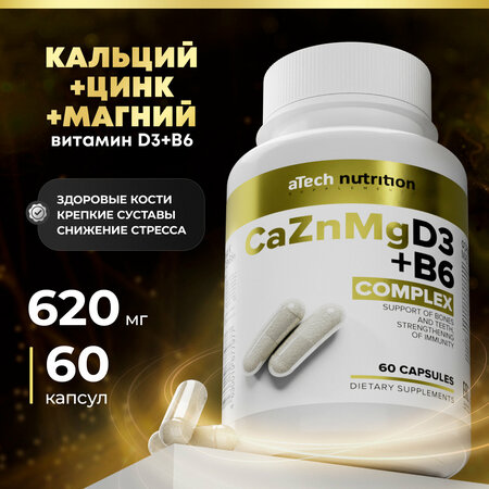 Calcium Zinc Magnesium D3 + B6 - сбалансированный комплекс витаминов. Магний - расслабляет нервную систему и мышцы, выводит их из гипертонуса, обеспечивает нормальное функционирование клеток миокарда. В6 – важный структурный витамин, с его участием происходит большая регенерация тканей, улучшает стрессоустойчивость, память, концентрацию. Д3 -добавлен в нужной дозировке для усвоения кальция, необходимого для строения организма. Цинк - укрепляет иммунитет, повышает либидо, улучшает мозговую деятельность, косвенно влияет на выработку тестостерона. Рекомендации: принимайте 3 капсулы в день, во время приема пищи или в соответствии с вашей индивидуальной программой питания или рекомендациями врача. Противопоказания: индивидуальная непереносимость компонентов продукта. Не употреблять во время беременности и в период кормления грудью, а также лицам, не достигшим 18 лет. Данный продукт не является лекарственным средством.