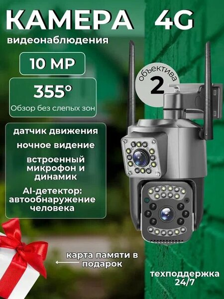 Камера видеонаблюдения уличная 4G с сим картой 10 МП, с датчиком движения, ночным режимом и сигнализацией - надежное и функциональное решение для обеспечения безопасности вашего дома или бизнеса. Высокое качество изображения: 10-мегапиксельная матрица обеспечивает четкие и яркие изображения даже при слабом освещении. Стабильное подключение к интернету: поддержка стандартов DHCP, DDNS и ONVIF позволяет легко установить и настроить камеру. Работа по сети 4G LTE: обеспечивает стабильное и быстрое подключение к интернету. Датчики движения, звука и освещенности: активируют запись при обнаружении движения или звука. Встроенный микрофон и динамик для двусторонней аудиосвязи. Слот для карт памяти: позволяет сохранять записи на внешнем носителе. Класс защиты IP66: делает камеру устойчивой к пыли и влаге. Адаптер питания в комплекте: позволяет использовать камеру без подключения к электросети. Выбирая камеру видеонаблюдения уличную 4G с сим картой и 10 МП с датчиком движения, ночным режимом и сигнализацией, вы получаете надежное и функциональное решение для обеспечения безопасности вашего дома или бизнеса!