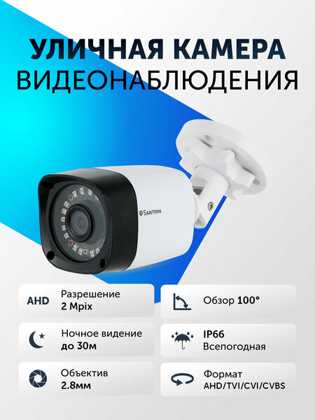 Камера видеонаблюдения 2 Mpix от Santrin — это надежный охранник и помощник в обеспечении безопасности на улице и в помещении. Видеокамера позволяет вести запись на видеорегистратор до 25 к/с без торможений и задержек, картинка плавная и без рывков.
