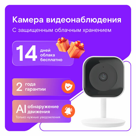 Камера видеонаблюдения идеально подойдет для квартиры, дома, ПВЗ, комнаты или офиса. Также камера наблюдения работает с системой Умный дом с Алисой. Стоимость подписки для передачи данных через телефон: первые 14 дней в подарок, далее – от 390 рублей в месяц