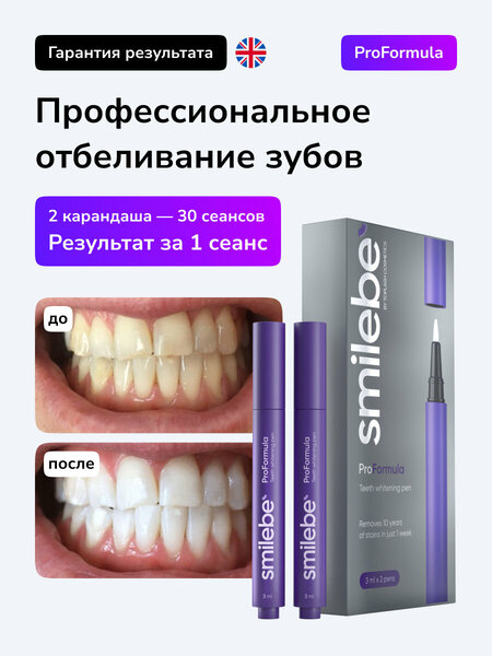 Хотите получить отбеливание профессионального уровня без похода к стоматологу? Тогда отбеливающий карандаш для зубов Smilebe - это то, что вам нужно! Новая разработка компании Smilebe - позволяет получить уровень кабинетного отбеливания без похода к стоматологу и намного дешевле. Карандаш Smilebe содержит высокоэффективный отбеливающий компонент Carbamide Peroxide в концентрации 16%, который используется стоматологами по всему миру и позволяет достичь желаемого результата всего за несколько дней. И что самое важное, вы можете использовать карандаш в любое время и в любом месте, без необходимости посещения стоматолога. Smilebe - это стильное и профессиональное решение, которое позволяет эффективно и безопасно провести процедуру отбеливания. В комплекте идут 2 карандаша, которых хватит на 30 сеансов. Советы от специалиста Smilebe Рекомендуется пройти минимальный курс отбеливания - 5 дней Не употребляйте красящие продукты пищи в течение 2 часов после отбеливания. Для поддержания достигнутых результатов следует следить за гигиеной полости рта, использовать зубную нить и ополаскиватели. Не оставляйте гель в полости рта во время сна.