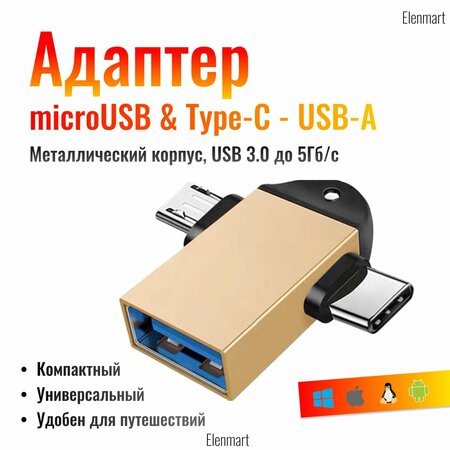 Адаптер переходник OTG, USB на USB TYPE-C Адаптер-переходник OTG, USB на USB TYPE-C предназначен для подключения и передачи данных между устройствами с различными интерфейсами. Благодаря этому адаптеру, вы сможете легко и быстро подключить флешку или другое устройство с интерфейсом USB к вашему смартфону, планшету или ноутбуку. Совместимость с различными интерфейсами Адаптер-переходник OTG, USB на USB TYPE-C совместим с различными интерфейсами, включая micro USB, USB OTG и USB Type-C. Это позволяет использовать его с широким спектром устройств, включая смартфоны, планшеты, ноутбуки и другие гаджеты. Прочный и стильный дизайн Адаптер-переходник OTG, USB на USB TYPE-C выполнен в стильном бежевом цвете, который гармонично впишется в любой интерьер. Прочный материал корпуса обеспечивает долговечность и надежность использования. Выбирая адаптер-переходник OTG, USB на USB TYPE-C, вы получаете удобный и надежный инструмент для передачи данных и подключения различных устройств.