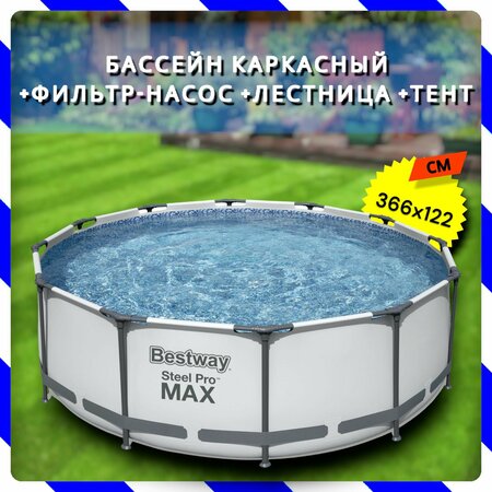 Здравствуйте уважаемые покупатели рады вас приветствовать в нашем магазине бассейнов и аксессуаров к ним. Каркасный бассейн Bestway — это идеальное решение для создания комфортной обстановки на вашем участке. Этот водный комплекс круглой формы станет отличным дополнением к вашему дому или даче. Бассейн Bestway подойдет как для взрослых, так и для детей, благодаря своим большим размерам и глубокой чаше. Благодаря специально разработанному каркасу из стали, этот бассейн отличается высокой устойчивостью и надежностью. Он легко справляется с нагрузкой воды, а морозоустойчивый материал обеспечит долгий срок службы бассейна. Высокий индекс защиты делает его отличным выбором для дачи или загородного дома. Высота бассейна позволяет наслаждаться прохладой возле воды в любое время года. Просто добавьте воду и наслаждайтесь расслабляющими моментами у огромного бассейна. Собирается этот каркасный бассейн Bestway быстро и легко благодаря складной конструкции каркаса. Пластиковая чаша обеспечивает безопасность использования, а прочный материал "steel pro" делает его идеальным выбором для вашего двора или сада. Не упустите шанс порадовать себя и своих близких шикарным подарком - каркасным бассейном Bestway! Успейте приобрести этот большой круглый комплект по выгодной цене прямо сейчас! Данный bestway фильтр-насос рекомендуется для использования как в домашних условиях, так и на приусадебном участке. Он оснащен элементами для улучшения процесса очистки - кварцевым материалом, который тщательно фильтрует песчаную воду. Конструкция помпы обеспечивает оптимальный поток для подачи воды через "картридж", что способствует эффективной очистке. Очистка воды осуществляется с порядком и системой. Благодаря этой системе, каждая капля воды проходит через множество стадий фильтрации, что гарантирует идеальную чистоту жидкости без посторонних примесей или загрязнителей. В результате получается полностью очищенная жидкость, подходящая для надувания любых бассейнов. Этот фильтр-насос 2006 л/ч имеет высокую скорость фильтрации за счет использования специального кварцевого материала. При помощи этого механизма достигается оптимальный уровень чистоты воды без лишних хлопот. Поэтому данный товар — это отличное решение для тех, кто ценит свое время и заботится о состоянии своего бассейна. Каркасный бассейн Bestway 366х122 см + фильтр-насос 2006 л/ч, тент, лестница (56420 BW). Каркасный бассейн Bestway 56420 отличается высокой прочностью и устойчивостью. Чаша выполнена из высококачественного трёхслойного ПВХ: два слоя плотного винила и один - полиэстер для особой прочности. Каркас металлический нержавеющий оцинкованный. Система FrameLink предотвращает появление ржавчины. Т-образные соединители труб каркаса выполнены их прочного пластика, благодаря чему нет соприкосновения металл-металл и, следовательно, коррозии. Не требует бетонирования и подготовки ямы, всё, что нужно - это плоская, горизонтальная площадка. Сезонный бассейн (рекомендуется разбирать на холодное время года) обладает простой конструкцией - может быть легко разобран и собран заново. Время сборки и подключения бассейна не более 1 часа. Поддержанию формы бассейна способствует трёхслойная лента из ПВХ, опоясывающая весь бассейн. В комплект поставки включены картриджный фильтр-насос производительностью 2006 литров в 