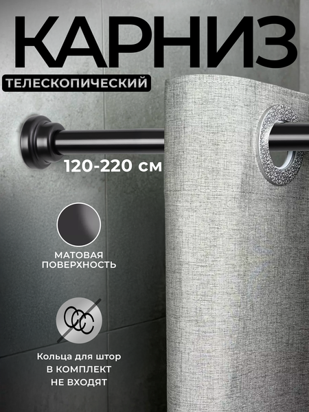Карниз для ванной представляет собой удобную штангу для шторы в ванной, которая легко устанавливается без сверления. Палка для шторы в ванну трансформирует ваше пространство, создавая комфортные условия. Карниз для ванной телескопический надежно фиксируется на любых поверхностях. Ширина регулируется от 120 до 220 см. Конструкция штанги для ванной представляет собой две трубки, вставленные одна в другую. Внутри штанги для ванной телескопической скрывается специальный механизм с пружиной, отвечающий за фиксацию трубок относительно друг друга в выбранном положении. Силиконовые вставки по краям карниза предотвратят его скольжение по стенам. Благодаря своей конструкции карниз телескопический позволяет регулировать длину, адаптируясь под нужды и параметры помещения. Это делает карниз в ванную универсальным решением для декорирования. Телескопический карниз для ванной помогает создать элегантный и современный вид комнаты. Установка карниза для ванной не требует сверления стен. Гарантийный срок - 6 месяцев. Диаметр штанги 22 мм.