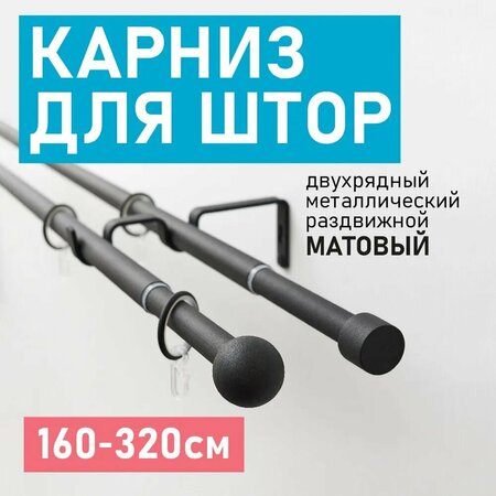 Карниз Трансформер 19/16 мм двухрядный шар 160/320см Черный муар Скин