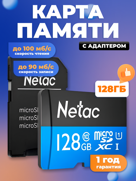 Карта памяти microSD 128ГБ Netac Class 10 Standard