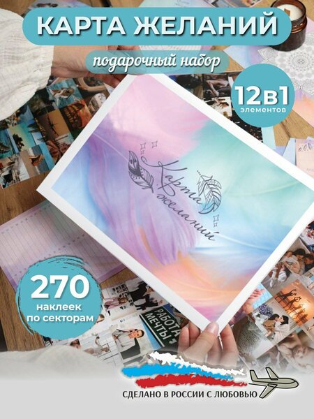 Ищите интересный и необычный подарок на день рождения подруге, любимой девушке, жене, девочке подростку, сестре, дочери? Подарочный набор для женщин Карта желаний 2025-2026 женская семейная прекрасно подойдет в качестве идеи для подарка. Доска визуализации - оригинальный подарок, наши мысли материальны и набор для творчества поможет исполнить мечты, нужно лишь правильно загадать желание и применить техники по активации карты. В набор для карты желаний входит: карта желаний (сетка Багуа), картинки (самоклеящаяся основа) наклейки для карты желаний 270 шт как из pinterest, чеки изобилия 10 штук, мои цели, инструкция, мандала для раскрашивания, лунный календарь на 2025 и 2026, список желаний 100 шт, трекер привычек, колесо жизненного баланса и аффирмации. Товар подходит для тех, кому близки психология и саморазвитие. Сама карта сетка Багуа может служить как доска желаний на стену. Подберите мотивационные наклейки для своей карты из набора и создайте подарочный бокс для женщин, девушек, девочки и детей подростков или ребенка (дочки, дочери), подруге. Карта мечты -это прикольные подарки на любой праздник: 1 сентября , День учителя, Новый год 2026 (лошади) любимому человеку, педагогу, тренеру, лп на др и даже подойдет брату или парню как мужской подарок. Карта желаний подойдет в подарок учителю, учительнице, воспитателю, врачу в благодарность, руководителю начальнице, сестренке подростку с Днем рождения, для жены или мужу на др. Подарочная коробочка (box) представлена как стильный конверт, где в дальнейшем можно хранить милые подарочки. Карти желаний для двоих - поларок взрослым родителям на годовщину, гостям праздника, просто сюрприз детям (детский падарок) или подарочный набор мужчине любимому мужу. На вечеринка и девичник вы можете преподнести как мини подарки. Современный и модный подарок девушке девочке на 10, 11, 12, 13, 14, 15, 16, 17, 18,19, 20, 25 лет и старше, без ограничений, который помогает поставить жизненные цели и реализовать их.