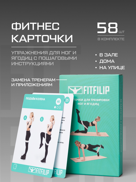 Комплект обучающих карточек сделает ваши тренировки насыщенными и увлекательными. Набор с изображением упражнений на лицевой стороне и видео уроками на другой. Они включают в себя самые эффективные, полезные занятия с фитнес резинками на развитие нижней части тела спины, ног, ягодиц, умножат ваши результаты. Помогут сделать фигуру мечты, похудеть и стать стройной. Для Всего в комплект входит 58 штук и супер подарок - деревянная подставка. Размер каждой по 8,7х12 сантиметров. На 50 двусторонних развивающих карточках находятся занятия трёх уровней сложности - начальный, средний, сложный. Каждый уровень обозначен точками от 1 до 3. В дополнительных 8 картах размещены рекомендации и советы, как составлять план тренировок. Также указаны мышечные группы, которые включены в работу при выполнении конкретной нагрузки. На обратной стороне имеется описание по выполнению и QR-код, при считывании которого, формируется ссылка. По ссылке можно перейти на видео урок и ознакомиться с тем, как выполнять конкретное упражнение. Влагостойкие и сделаны из премиум пластика, который никак не сможет намокнуть и испортится со временем. Главное назначение - это оптимизация тренировочного процесса в картинках, они полностью заменяют персонального тренера, инструктора и обучают вас правильной техники. Имея перед собой визуальный план проведения тренировки, проводить её гораздо легче, понятнее, а главное эффективнее. В зависимости от степени подготовленности или цели, необходимо выбрать карту соответствующей категории, а из них составить программу, выложив перед собой в порядке очередности. После того, как оно выполнено в заданном количестве раз и повторов, развивающая карточка убирается, начинайте заниматься со следующей по порядку упражнений. В наборе имеется специальная деревянная подставка, с помощью которой игральная карта можно становится вертикально, если занимающемуся так будет удобнее. Можно заниматься с детьми в игровой форме. Больше не придётся искать подходящие тренировки для дома или в тренажёрном зале, мы собрали коллекцию для вас, самое ценное в этом комплекте. Всё, что вам нужно для красивой фигуры, мотивации и правильного плана, это приобрести наши пластиковые инструкции и иметь в своём арсенале любые эспандеры для ног, для проведение саморазвития над собой. Подойдут для мужчин и девушек, а так же для мамы домой, педагогов в учебных заведениях, и тренеров в спортивных залах. Систематизировать процесс теперь легко и просто. Отличный подарок и особенно полезно для начинающих спортсменов, которые только начинают заниматься фитнесом и хотят избежать ошибок.