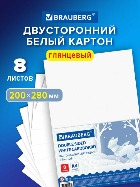 Набор белого картона BRAUBERG формата А4 (200х280 мм) станет идеальным помощником для творчества и хобби. Этот мелованный картон, обладающий плотностью 200 г/м2, подходит для детей с трех лет и рекомендован для уроков труда и технологии. В наборе 8 листов белого картона, что позволяет использовать его для различных целей: создания поделок, рисования и аппликаций. Листы формата А4 предоставляют достаточно места для воплощения любой творческой задумки. Картон BRAUBERG – незаменимый элемент в школьной канцелярии, дарящий детям возможность развивать свои навыки. Он также отлично подходит для тех, кто ищет качественные канцелярские товары. Продукт включает творческую инструкцию по созданию аппликации на обороте, что делает его использование еще более увлекательным. Выбирайте качественный белый картон для своих проектов и уроков в школе. • Формат: А4. • Количество листов: 8. • Плотность картона: 200 г/м2. • Мелованный картон: да. • Тип товара: картон белый мелованный. • Вид обложки: вкладыш формата А5. • Дизайн: Лисенок. • Длина: 280 мм. • Ширина: 200 мм. • Индивидуальная упаковка: да. • Упаковка: пакет. • Артикул производителя: 115491.