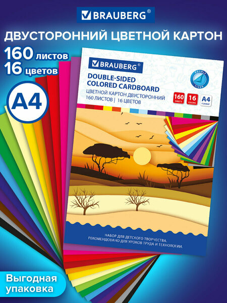 Набор цветного картона BRAUBERG станет идеальным решением для творчества и хобби. Этот цветной картон формата А4 (210х297 мм) обладает плотностью 180 г/м2, что делает его прочным и долговечным. Благодаря тому, что картон тонирован в массе, цвет сохраняется на обеих сторонах, что особенно полезно для создания аппликаций и поделок. В наборе вы найдете 160 листов в 16 различных цветах, что обеспечивает большое разнообразие для ваших проектов. Цветной картон BRAUBERG отлично подходит для школьных занятий и презентаций, отвечая всем требованиям, предъявляемым к канцелярским товарам. Его легко резать ножницами, сгибать и клеить, что делает его удобным в использовании даже для самых маленьких учеников, начиная с трехлетнего возраста. Этот немелованный двусторонний картон станет незаменимым помощником, как для маленьких школьников, так и для взрослых, занимающихся моделированием. Обеспечьте своих детей качественной канцелярией, выбрав цветной картон BRAUBERG. • Формат: А4. • Количество листов: 160. • Количество цветов: 16. • Тип картона: тонированный. • Двусторонний: да. • Плотность картона: 180 г/м2. • Тип товара: картон цветной тонированный. • Дизайн: Саванна. • Длина: 210 мм. • Ширина: 297 мм. • Индивидуальная упаковка: да. • Упаковка: пакет. • Артикул производителя: 115090.