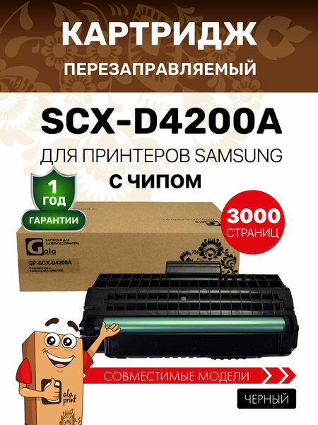 Совместимый лазерный картридж SCX-D4200A подходит для принтеров Samsung SCX-4200 / SCX-4220 . При производстве расходных материалов GalaPrint используются только качественные комплектующие. Картриджи GalaPrint не уступают оригинальным, полностью совместимы с заявленными моделями принтеров, обеспечивают естественную цветопередачу и хорошее качество печати. Важно. Производитель имеет право, не уведомляя заказчика, вносить изменения в конструкцию и комплектацию картриджа, без ухудшения его потребительских свойств. В случае наличия оранжевых транспортировочных фиксаторов, защитных крышек, шторок и чеки/запорной ленты их нужно извлекать. Ресурс картриджа составляет - 3000 страниц формата А4 при 5% заполнении страницы.
