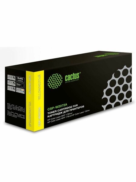 Картридж лазерный CSP-W2072A с обновляемым чипом под последнюю прошивку аппарата. Обновление чипов до текущих прошивок аппаратов можно произвести в СЦ Cactus. Желтый. Совместим с принтерами HP.