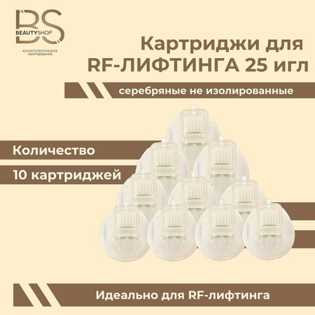 Набор картриджей 10 шт сменный модуль из 25 золотых игл с серебряным наконечником (не изолированные) подходят к косметологический аппаратам для лица и тела микроигольчатый РФ лифтинг с вакуумом. Аппарат микроигольчатого фракционного РФ лифтинга с вакуумом и золотым напылением игл Микроигольчатый RF-лифтинг – это современный фракционный метод, который воздействует на кожу с помощью минимально инвазивных микроигл. Такая технология повышает эластичность кожного покрова, способствует подтяжке и омоложению. Процедура предназначена для кожи тела и лица и показывает отличные результаты в кратчайшие сроки. Эффект от работы фракционного радиочастотного аппарата основан на воздействии микроигл со строго контролируемой RF-энергией. Они проникают в различные слои кожи на разную глубину – от 0,2 до 3,5 мм. При этом все проходит совершенно безопасно. Принцип работы фракционного радиочастотного аппарата Картридж, заправленный минимально инвазивными микроиглами, плотно контактирует с кожей. Благодаря этой плотности и плавности прокалывания, болевые ощущения сводятся практически к нулю. Радиочастотная биполярная RF-энергия способствует денатурации тканей, которые окружают микроиглы аппарата. Запускается интенсивный процесс выработки эластина и регенерации коллагена.