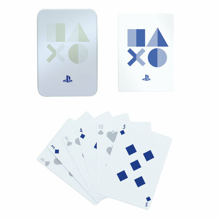 Описание игральных карт Playstation PS5: Карты игральные Playstation PS5 выполнены в стиле Playstation. PlayStation - бренд, принадлежащий Sony Interactive Entertainment и включающий в себя серию стационарных и портативных игровых консолей (также используемых как домашние кинотеатры), игровых контроллеров и онлайн-сервисов. Первая модель игровой приставки была выпущена в декабре 1994 года в Японии. Характеристики игральных карт Playstation PS5: Размер: 3,4х7,8х11,2 см Металлический кейс для хранения карт Материал: металл, бумага