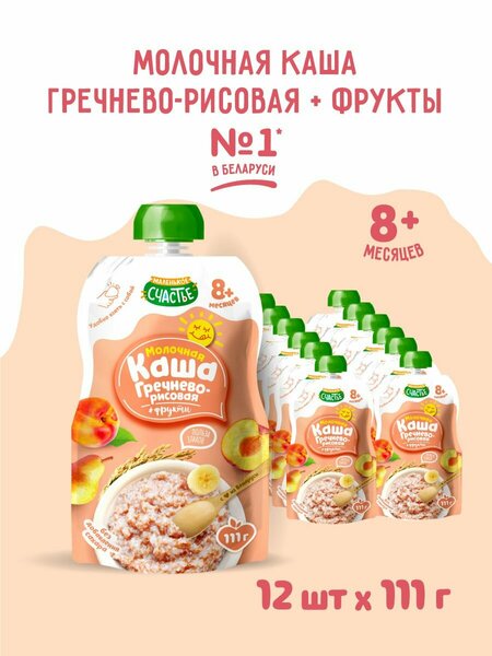 Детское пюре с молочной кашей "Маленькое Счастье" гречнево-рисовой + фрукты - это питательный и вкусный продукт, разработанный специально для детей с 8 месяцев. В упаковке 12 порций, каждая из которых содержит 111 грамм продукта. Продукт изготовлен на основе гречневой и рисовой круп, что делает его богатым источником полезных микроэлементов и витаминов. Пюре "Маленькое Счастье" приготовлено на коровьем молоке, что обеспечивает нежный и приятный вкус. Продукт не содержит ГМО, консерванты и искусственные добавки, что делает его безопасным и полезным для здоровья малыша. Продукт имеет жидкую форму выпуска и готов к употреблению. Энергетическая ценность 80 ккал на 100 грамм, что делает пюре сытным и питательным. Продукт упакован в мягкую упаковку, которая сохраняет все полезные свойства и вкусовые качества продукта. Хранить продукт рекомендуется при температуре от 0 °С до 25 °С и относительной влажности воздуха не более 75 %. Открытую упаковку следует хранить в холодильнике при температуре от 0 ºС до 6 ºС не более суток. "Маленькое Счастье" - это выбор заботливых родителей для своих малышей.