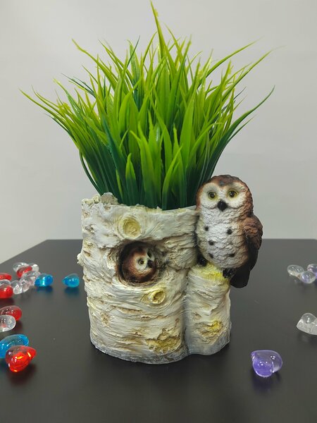 Кашпо декоративное Пенек с совами , размер 21*18*15 см , выполнено из полистоуна , можно ставить как в доме , так и на улице для декора сада или дома . Кашпо из полистоуна являются одними из самых популярных материалов для украшения дачного участка. Этот искусственный камень сочетает в себе все качества природного материала: он устойчив к воздействию влаги и солнечным лучам. При должном уходе садовые фигуры из полистоуна будут долгие годы украшать сад и радовать своих обладателей. Материал: полистоун.