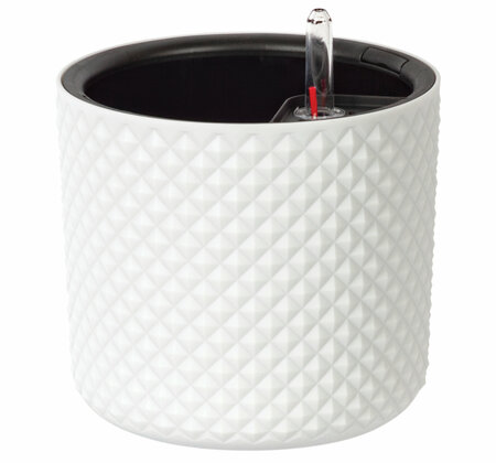 Кашпо фасет состоит из основного горшка, вставки, а также из автополива. Благодаря вставке отсутствует необходимость в поддоне. Она отводит лишнюю влагу и создаёт дополнительный объём у кашпо. Как это работает? Следует полить растение. Лишняя влага стечёт в кашпо. Индикатор уровня воды поднимется, говоря о том, что в кашпо достаточно воды. По мере испарения воды, он опустится на дно и достоверно покажет когда следует произвести полив. Система автополива позволяет поддерживать почву максимально увлажнённой (не переливать и не пересушивать) Кашпо представлено в двух цветах: белый и графитовый.