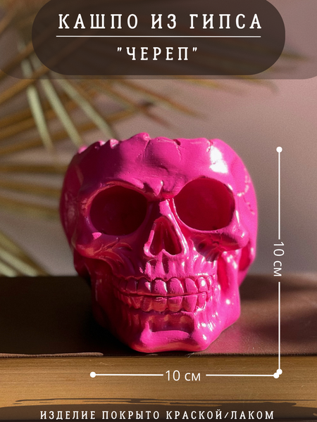 Кашпо из гипса Череп - это не просто декоративный элемент, но и функциональный предмет интерьера. Оно может использоваться как горшок для растений, подставка для цветов или органайзер. Изделие выполнено в розовом цвете, обработано глянцевым лаком, что придает ему элегантный и современный вид. Благодаря этому, кашпо может контактировать с небольшим количеством воды, не оставляет следов на мебели. Окрашивание производится вручную, дизайн выполняется кистями, поэтому окрашивание ручной работы придает изделию уникальность. Для ухода за кашпо достаточно протирать его мягкой сухой/влажной тканью или использовать кисть для удаления пыли. В целом, кашпо из гипса череп - это стильный и функциональный предмет интерьера, который станет ярким акцентом в вашем доме или на балконе. Высота изделия: 10 см. Ширина изделия: 10 см. Глубина отверстия: 6 см. Диаметр отверстия: 8*7 см. Вес изделия: 0.5 кг. В нашем магазине можно найти пособия для академического рисунка, гипсовые кашпо, статуэтки персонажей и бюсты известных личностей, гипсовые 3D раскраски, подставки, поддоны, ограничители (букенды), а так же окрашенные изделия в цвет и с уникальными дизайнами.