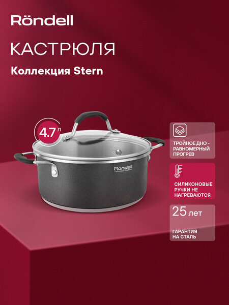 Кастрюля Rondell Stern RDS-019 темно-серый, объём 4.7л, диаметр 24см, материал корпуса нержавеющая сталь 18/10