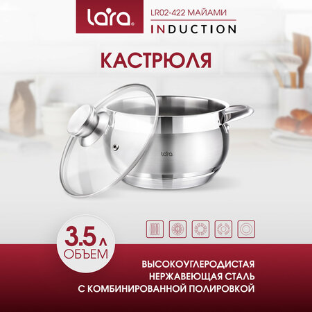 Кастрюля LARA LR02-422 Майами - это высококачественный кухонный инструмент, который станет незаменимым помощником на вашей кухне. Изготовлена из нержавеющей стали, что обеспечивает долговечность и надежность. Благодаря толстым стенкам и многослойному дну, кастрюля обеспечивает равномерное нагревание и сохранение тепла. Кастрюля имеет объем 3,5 литра, что позволяет приготовить достаточное количество пищи для всей семьи. Диаметр крышки составляет 20 см, что обеспечивает удобное использование и хранение. Кастрюля подходит для всех видов кухонных плит, включая индукционные. Это позволяет использовать ее на любой плите, включая современные индукционные плиты. Крышка кастрюли входит в комплект и имеет удобный диаметр 20 см. Это позволяет легко контролировать процесс приготовления пищи и сохранять тепло. Кастрюля LARA LR02-422 Майами также подходит для использования в духовке. Это позволяет готовить разнообразные блюда, сохраняя их вкус и аромат. Мытье кастрюли в посудомоечной машине возможно, что значительно облегчает процесс уборки на кухне. Кастрюля LARA LR02-422 Майами - это сочетание функциональности, качества и стильного дизайна.