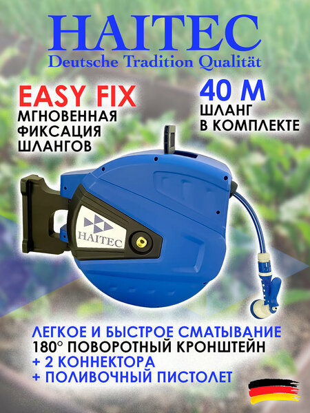 Вы уже давно думаете о том, что поливать обычным шлангом, потом сматывать его, это слишком утомительно и неудобно? Предлагаем рассмотреть инновационную настенную инерционную катушку HAITEC HT-WSA40 с 40-ти метровым шлангом и насадкой для полива. При помощи 40 м. шланга у вас появится возможность полива окружности диаметром около 80 м . Это автоматическое устройство поможет обеспечить порядок на вашем садовом участке. Шланг всегда будет аккуратно закатывается, а автоматическая прокрутка практично и надежно зафиксирует его в любом месте, благодаря чему, Вы сможете использовать именно необходимое количество метров шланга при отсутствии возвратных движений. Автоматическое сворачивание срабатывает при коротком натяжении шланга, который затем полностью сам втягивается до специального упора. В комплект уже входят быстроразъемные соединения 1/2", соединение с водой, коннекторы, а также кронштейн и шланг 1/2" 40m + 2м соединительный шланг.