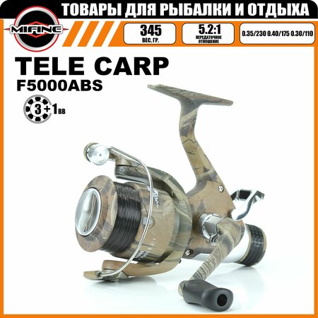 Катушка рыболовная с леской MIFINE TELE CARP 5000. Это бюджетная безынерционная катушка камуфляжной расцветки со складной пластиковой ручкой и графитовой шпулей 5000 размера. На шпулю намотана качественная монофильная леска. Катушка оборудована системой «байтраннер». Это очень удобное техническое решение, которое позволяет одним движением рычага отключить фрикционный тормоз, расположенный в шпуле. В таком режиме леска сходит свободно и полностью исключается риск обрыва лески, потери удилища от рывка крупной рыбы. Степень свободы, с которой вращается шток, можно настроить регулировочной гайкой фрикционного тормоза, расположенной в нижней части корпуса катушки. Отключение режима «байтраннера» происходит после проворота ручки или нажатия рычага. Такие катушки очень удобны в любом виде донной ловли. Очень востребованы в фидерной рыбалке и карповой ловле с использованием электронных сигнализаторов поклевки. Несмотря на невысокую стоимость, у катушки MIFINE TELE CARP механизм надежный и отлично отрегулированный. Вращение очень плавное с передаточным соотношением 5,2 оборота ротора за 1 оборот ручки. В механизме использовано 3 шариковых подшипника + роликовый подшипник обгонной муфты, обеспечивающий катушке антиреверс с мгновенной остановкой ротора. Благодаря компьютерной балансировке, вибраций при вращении практически не ощущается. В целом, MIFINE TELE CARP - одна из лучших катушек в своей ценовой группе и является отличным выбором для начинающих рыболовов. Мы являемся официальным представителем бренда Mifine на территории РФ! Только у нас вы можете получить достоверную информацию о товаре.