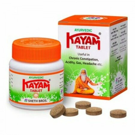 Натуральное абрведическое средство - таблетки от запора Каям. Мягкое слабительное, не вызывает привыкания. Инструкция по применению. Каям таблетки от запора Таблетки от запора Каям (Kayam tablet Sheth Brothers) - это аюрведическое средство для поддержания здоровья пищеварительной системы. Таблетки Каям используются при лечении желудочно-кишечных заболеваний, включая хронические запоры, расстройства желудка, повышенную кислотность, газы, вздутие живота и т. д. Они также помогают облегчить вторичные проблемы, вызванные желудочными проблемами, такими как язва желудка, головные боли, боли в животе. Основная информация: - натуральный продукт - поддерживает здоровье пищеварительной системы - эффективно помогает при запорах - избавляет от вздутия живота, повышенной кислотности и газообразования, судорог Показания к применению Каям: - запор - вздутие живота - повышенная кислотность - повышенное газообразование - судороги Противопоказания: - индивидуальная непереносимость отдельных компонентов - при беременности и в период лактации необходимо проконсультироваться с врачом Активнодействующие компоненты: - Содержит Триврит, аюрведическую траву со слабительными свойствами. - Содержит листья харитаки и сенны, которые являются мягкими слабительными средствами и помогают облегчить запор. - Содержит Яштимадху, который полезен при проблемах с желудком и при лечении пептических язв и язв во рту. - Содержит лавану Саиндхава и кшару Сварджика, которые обычно используются для лечения гастрита. Инструкция по применению: Принимать по 1-2 таблетки с тёплой водой перед сном. Рекомендуется предварительная консультация с врачом. Условия хранения: хранить в сухом, прохладном месте. Не хранить в холодильнике. Срок годности: 3 года с момента производства.