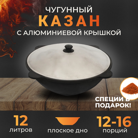 Казан чугунный узбекский на 12 литров, плоское дно, с крышкой