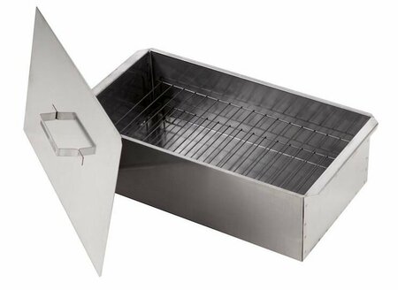 Коптильня двухъярусная малая кедр. В качестве источника тепла может служить костер, переносная газовая плита и т. п. В качестве источника дыма рекомендуются опилки или мелкие стружки лиственных пород древесины (дуб, ольха, яблоня, вишня, груша и т. п.). Сталь толщиной 0.8 мм. Размеры: 420х270х175 мм. Вес: 3 кг. В комплект коптильни входят: корпус, 2 решетки и крышка.