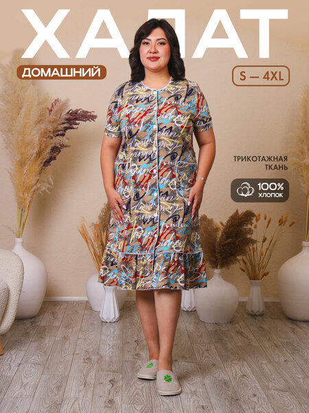 Женский домашний халат на пуговицах с карманами (лайкра/хлопок) Уютный и практичный халат для дома — идеальный выбор для повседневного комфорта. Выполнен из мягкой трикотажной ткани с добавлением лайкры: тянется, не сковывает движений и отлично сидит по фигуре. Особенности: Застёжка на пуговицах — удобно надевать и снимать Наличие удобных карманов Материал: хлопок с лайкрой — дышит, приятен к телу, не теряет форму Универсальная длина и комфортный крой Подходит для любого времени года Состав: 95% хлопок, 5% лайкра Преимущества: Эластичная ткань мягко облегает силуэт Практичен в уходе — хорошо переносит стирку Подходит для дома, отдыха и уютных вечеров Создан для вашего комфорта — удобный и приятный на ощупь халат, который станет любимой частью домашнего гардероба.