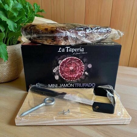 Каждый кусочек этого прошутто наполнен насыщенным вкусом, который способен удивить даже самых требовательных ценителей. Хамон с трюфелем станет отличным дополнением к вашей коллекции продуктов, привнося в неё элементы испанской кухни. Этот набор прекрасно подойдет для подарка на любые торжества: дни рождения, юбилеи или корпоративные мероприятия, ведь он сочетает в себе элегантность и гастрономическое наслаждение.