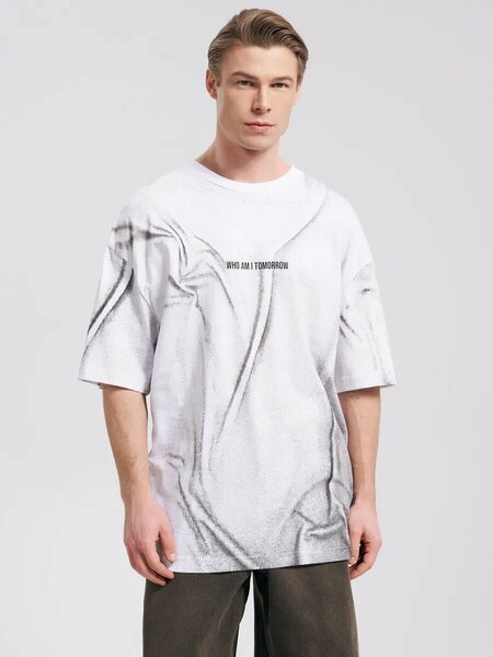 Мужская футболка от бренда твое — это идеальное сочетание стиля и комфорта. Модель выполнена в классическом белом цвете и украшена орнаментом по всей поверхности, что придает ей уникальный и выразительный вид. Футболка имеет надпись, которая добавляет ей индивидуальности и характера. Оверсайз свободный крой обеспечивает максимальный комфорт и свободу движений, подходя для любой фигуры. Изготовлена из 100% хлопка, что делает ее легкой, дышащей и приятной на ощупь. Круглый вырез с широкой горловиной добавляет модели удобства и элегантности. Короткий рукав делает футболку подходящей для повседневного ношения, а также для занятий спортом и фитнесом. Благодаря большой размерной сетке, эта футболка подходит как для мужчин, так и для подростков. Она прекрасно сочетается с различными элементами гардероба, создавая стильные и универсальные образы на каждый день. Футболка также отлично подходит для домашней одежды или в качестве подарка. Материал футболки деликатен к телу и требует бережной стирки. Эта трикотажная модель станет отличным дополнением к вашему гардеробу, подчеркивая вашу индивидуальность и стиль в любой ситуации.